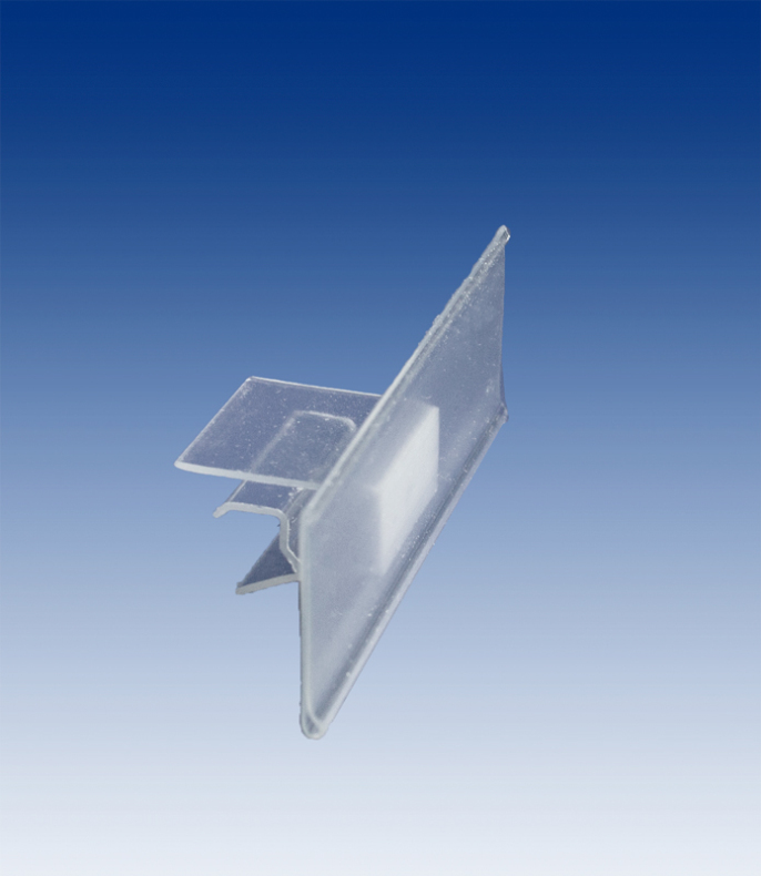 Label strip with attachment for glass shelf & wire baskets.